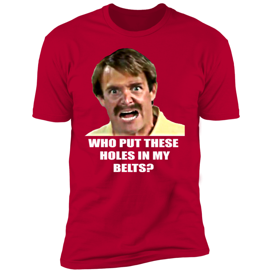 Now you can remind those around you to keep their dang hands off your belts with our NEW exclusive “NO Holes’” Premium Tees!